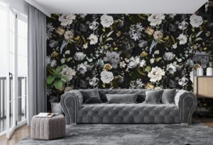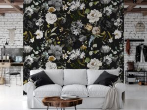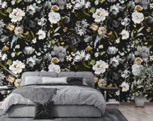 Dramatik Koyu Çiçek Desenli Duvar Kağıdı