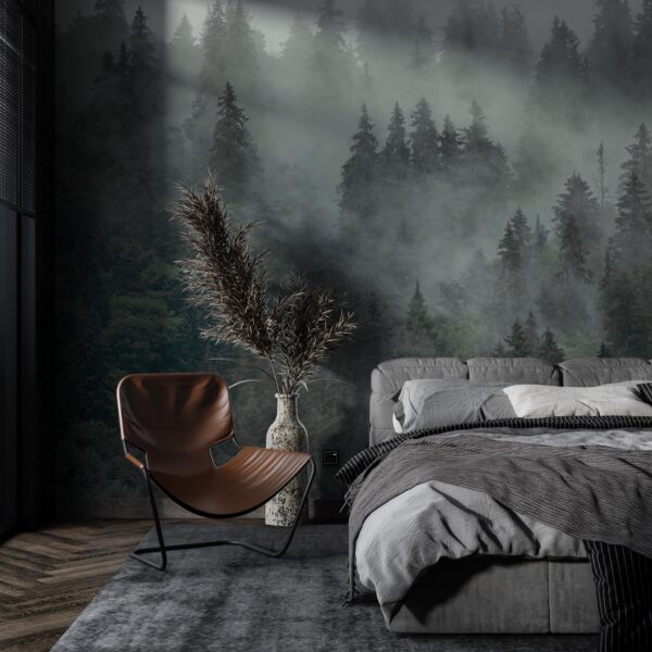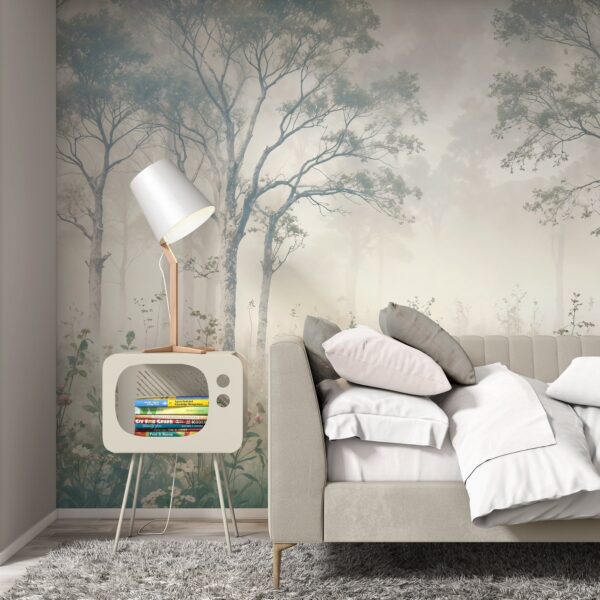 Sisli Orman Manzaralı Ağaç Desenli Duvar Kağıdı