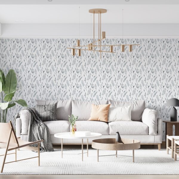 Minimalist Gri Yaprak Desenli Duvar Kağıdı