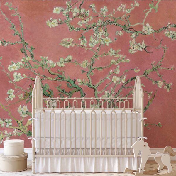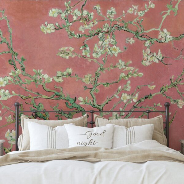Pembe Arka Planlı Çiçekli Dal Duvar Kağıdı