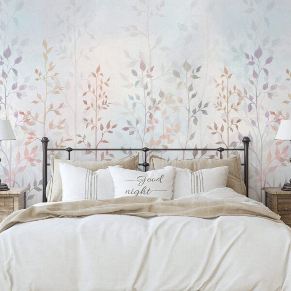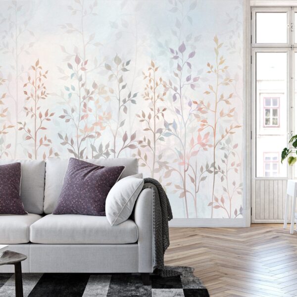 Pastel Renkli Sanatsal Çiçekli Ağaç Duvar Kağıdı