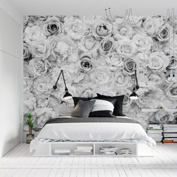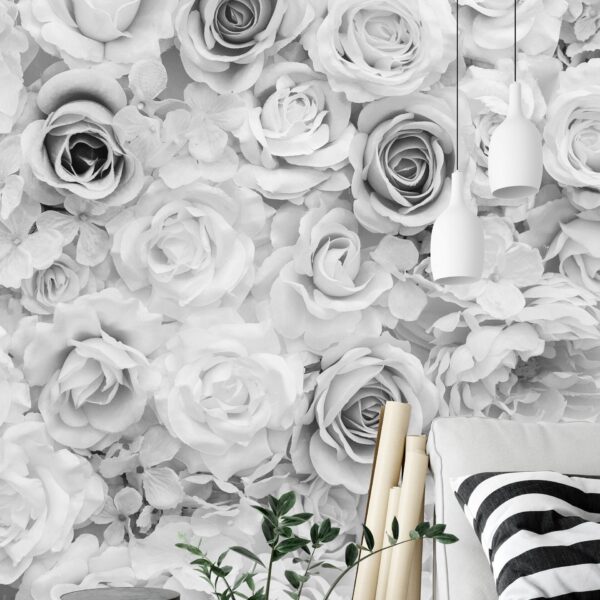 Siyah Beyaz Gül Desenli 3D Duvar Kağıdı