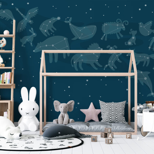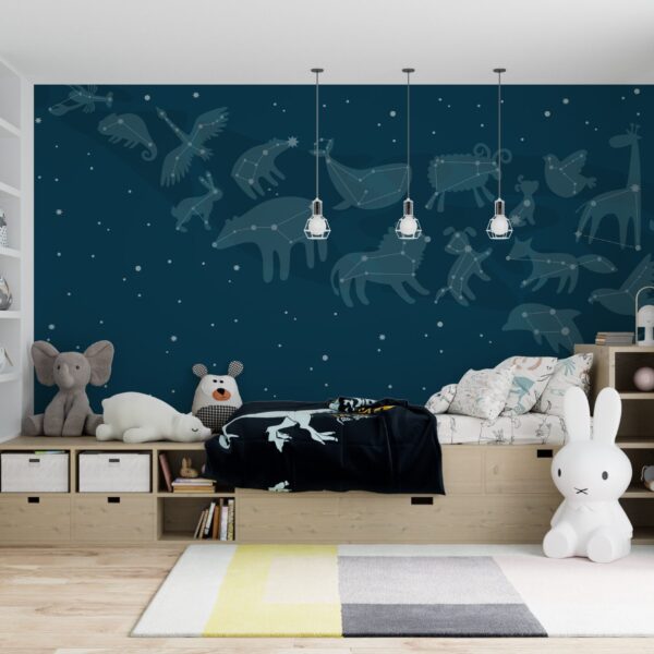 Yıldız Takımyıldızları ve Hayvanlar Temalı Çocuk Odası Duvar Kağıdı