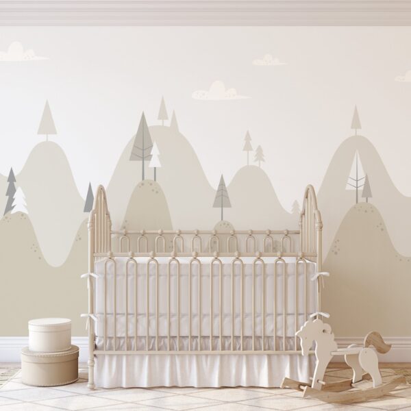 Yumuşak Dağlar ve Ağaçlar Desenli Duvar Kağıdı