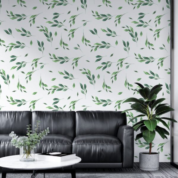 Yeşil Yaprak Desenli Duvar Kağıdı