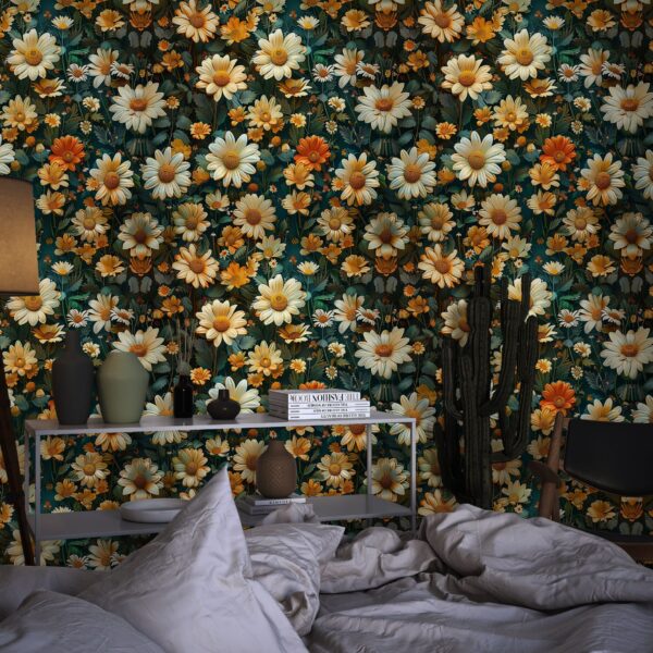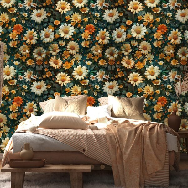 Yoğun Papatya Desenli Vintage Duvar Kağıdı