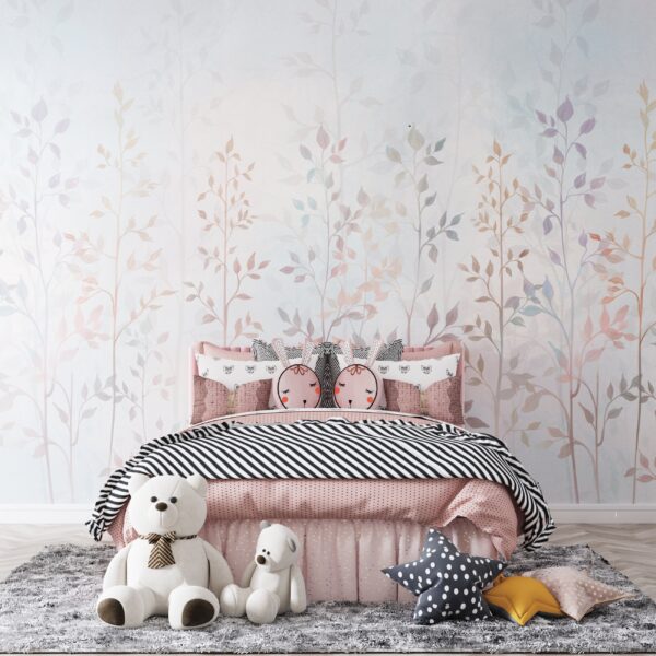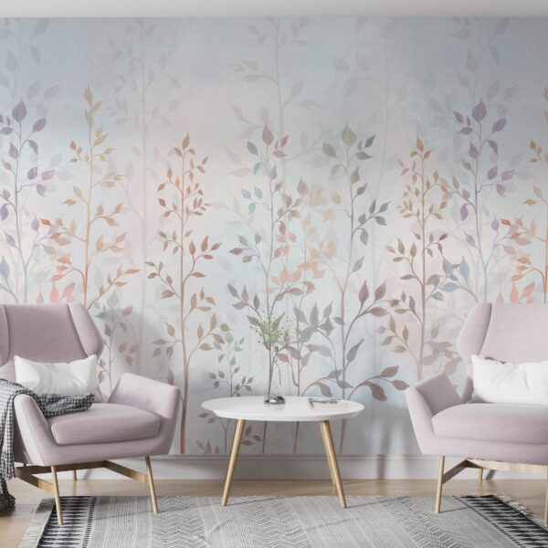 Yumuşak Pastel Renklerde Narin Yapraklı Dallı Duvar Kağıdı