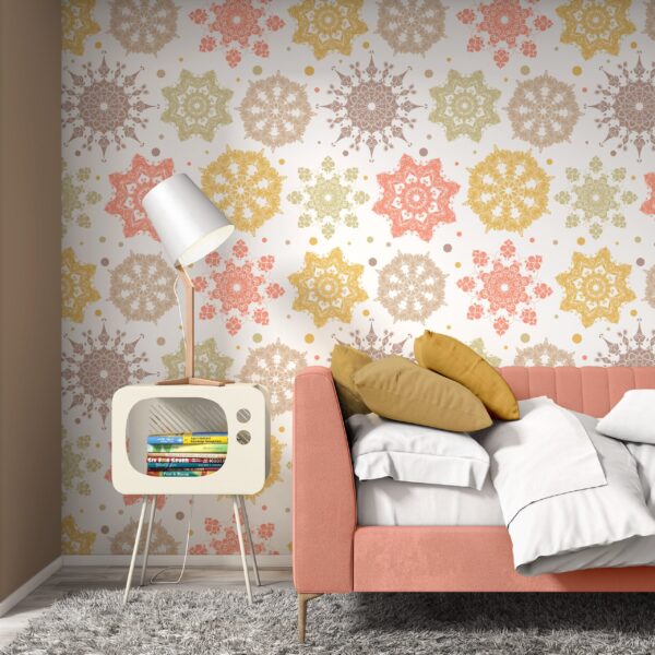 Pastel Çiçek ve Yaprak Desenli Modern Duvar Kağıdı