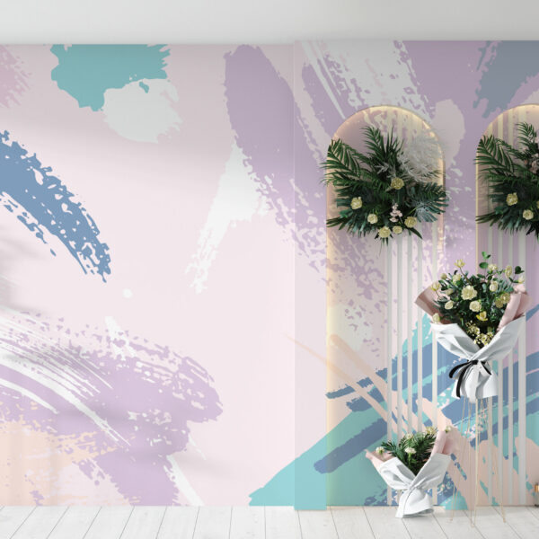 Pastel Renk Akışlı Altın Detaylı Soyut Duvar Kağıdı