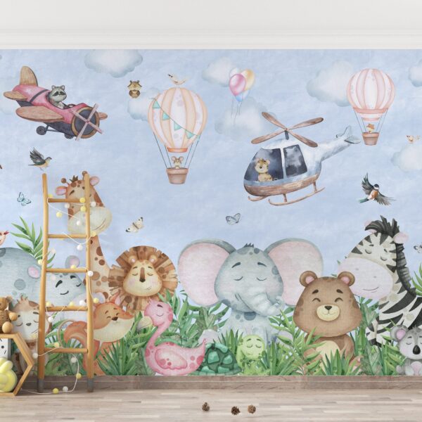 Hayvanlar ve Uçan Balonlar Temalı Duvar Kağıdı
