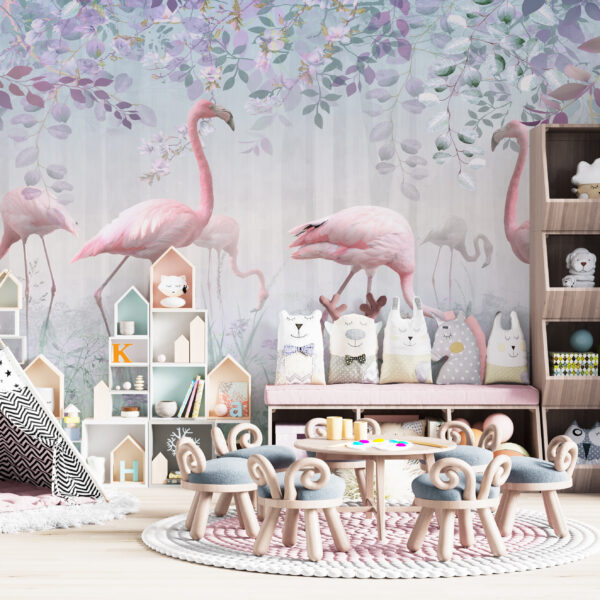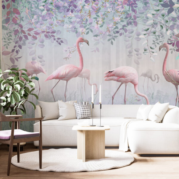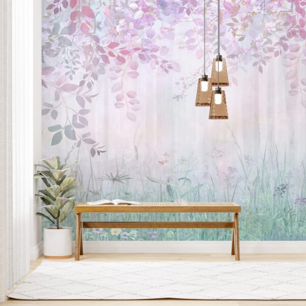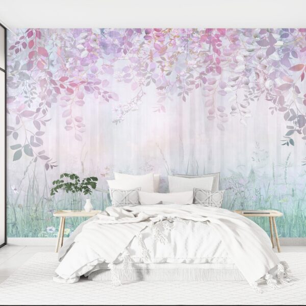 Mor Çiçekli Suluboya Duvar Kağıdı