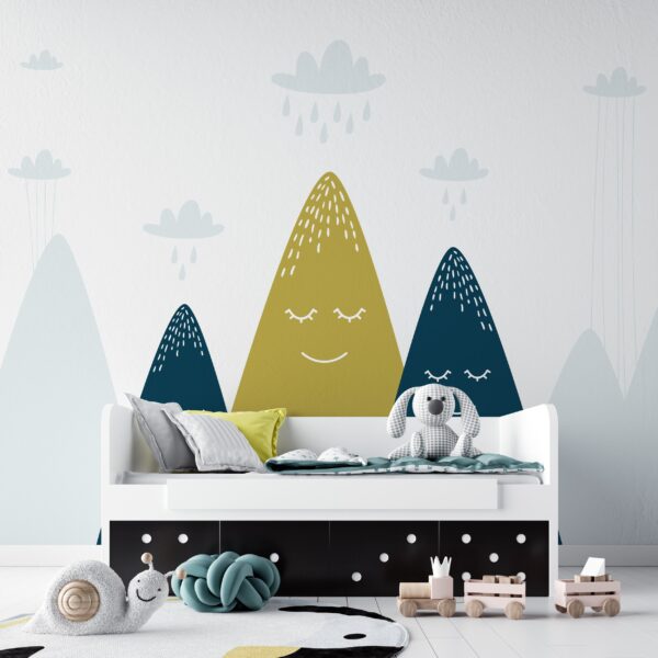 Renkli Dağlar ve Bulutlar Desenli Duvar Kağıdı