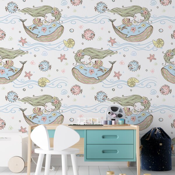 Pastel Deniz Kızı Temalı Duvar Kağıdı