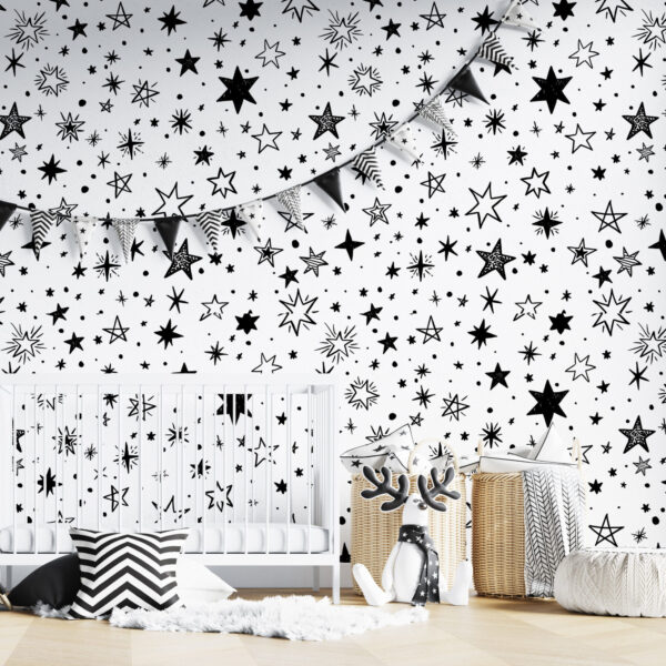 Siyah Beyaz Yıldız Desenli Duvar Kağıdı