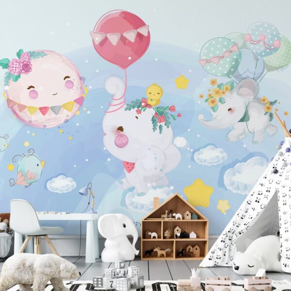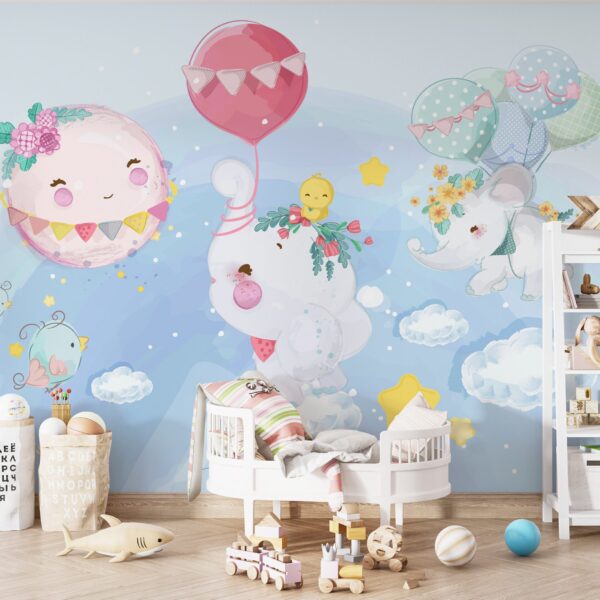 Sevimli Fil ve Balon Temalı Duvar Kağıdı
