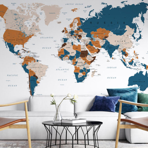 Lacivert ve Karamel Renkli Dünya Haritası Duvar Kağıdı