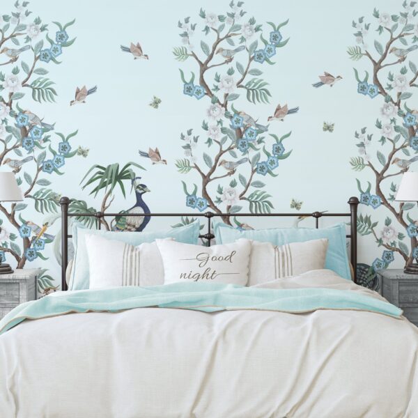 Kuş ve Çiçek Desenli Duvar Kağıdı