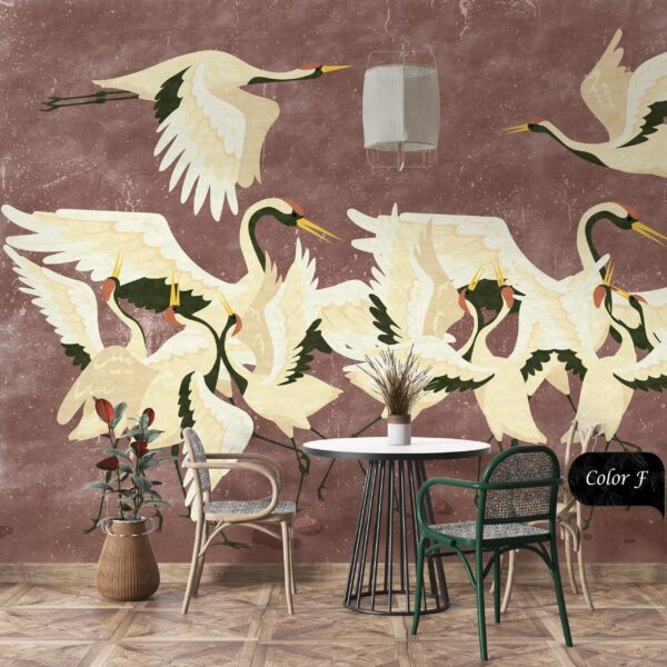Kuş ve Çiçek Desenli Renkli Duvar Kağıdı