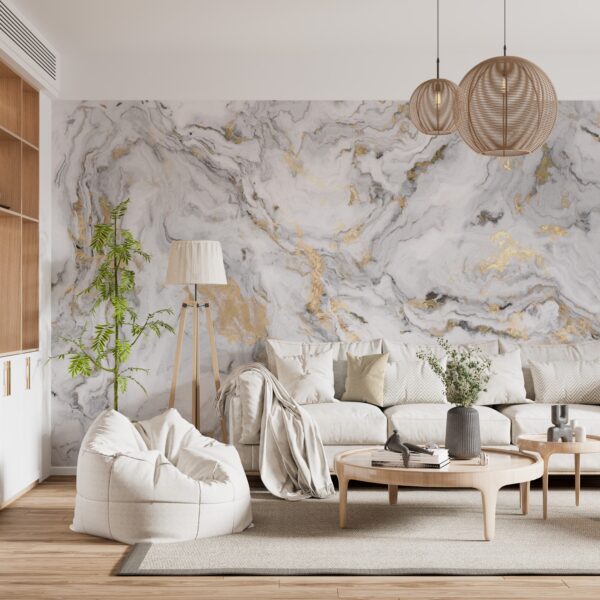 Lüks Altın Damarlı Beyaz Mermer Duvar Kağıdı