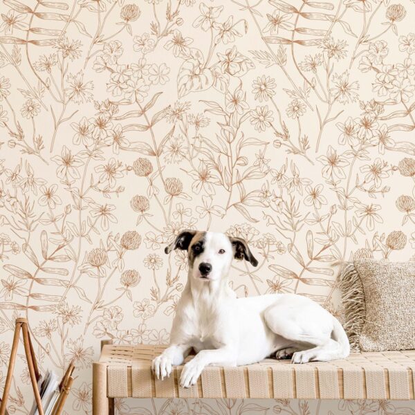 Krem Zemin El Çizimi Kır Çiçekleri Duvar Kağıdı