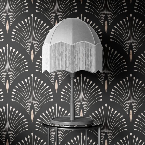 Art Deko Yelpaze Desenli Siyah Krem Duvar Kağıdı