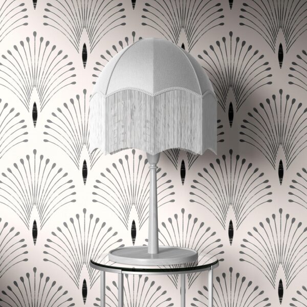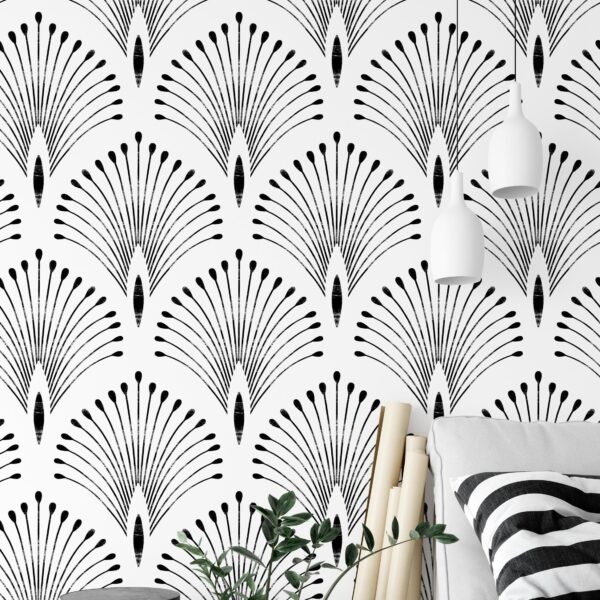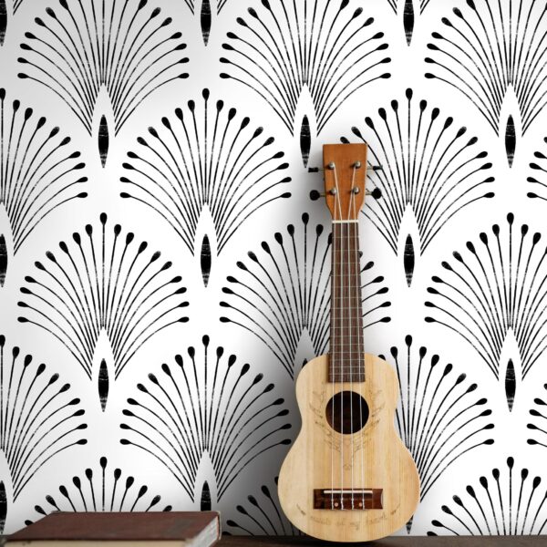Art Deko Siyah Beyaz Yelpaze Desenli Grafik Duvar Kağıdı