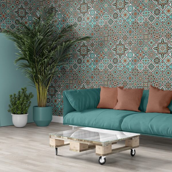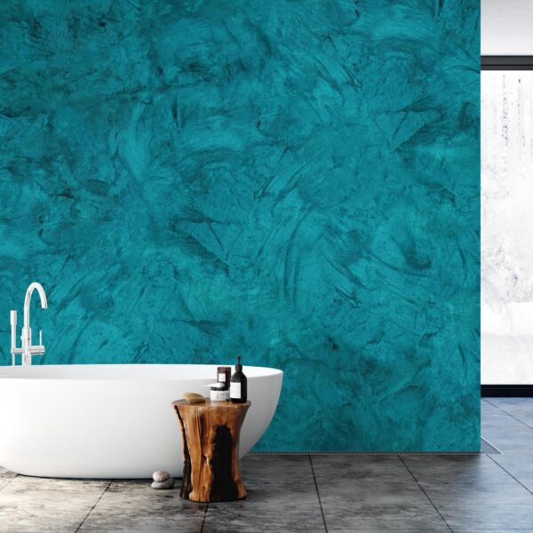 Turkuaz Sıva Efektli Duvar Kağıdı