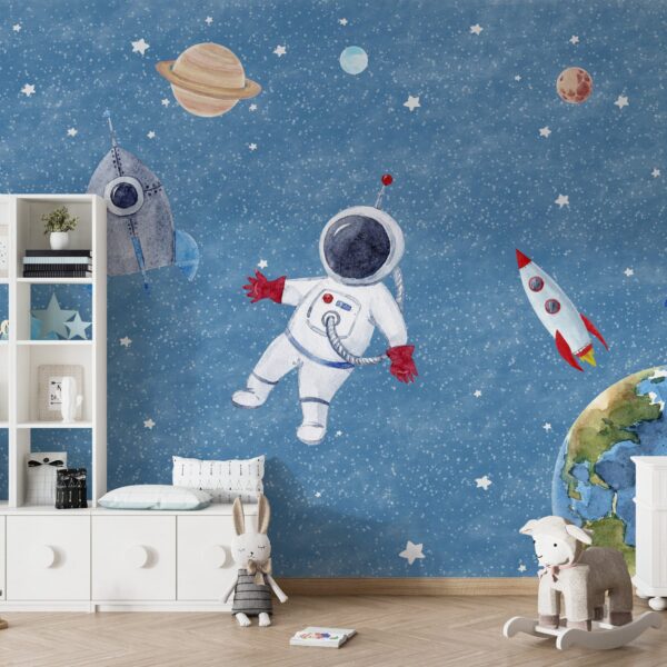 Uzay Temalı Çocuk Odası Duvar Kağıdı