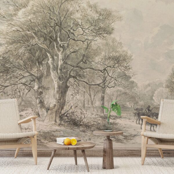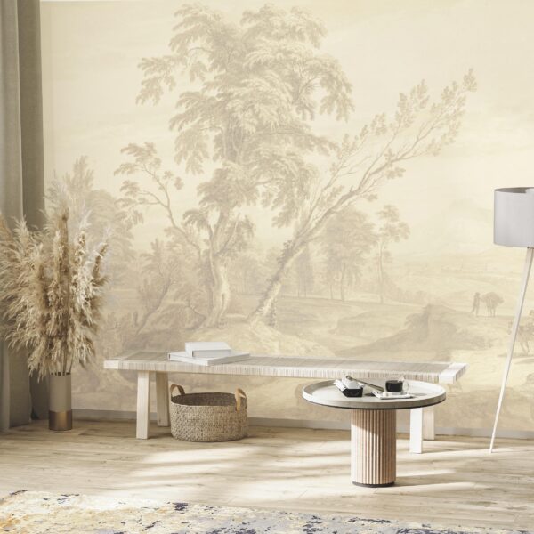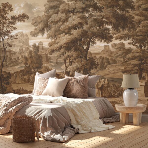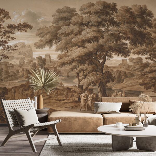 Vintage Sepya Manzara Duvar Kağıdı – Soft ve Elegant Tasarım
