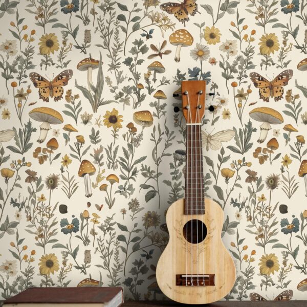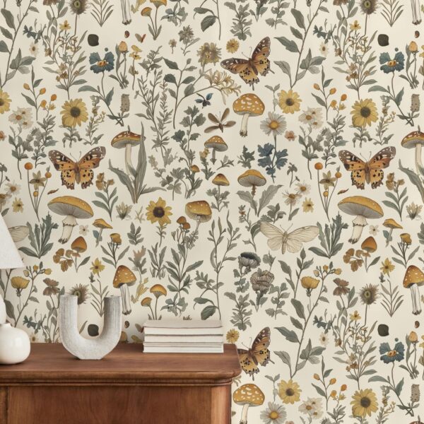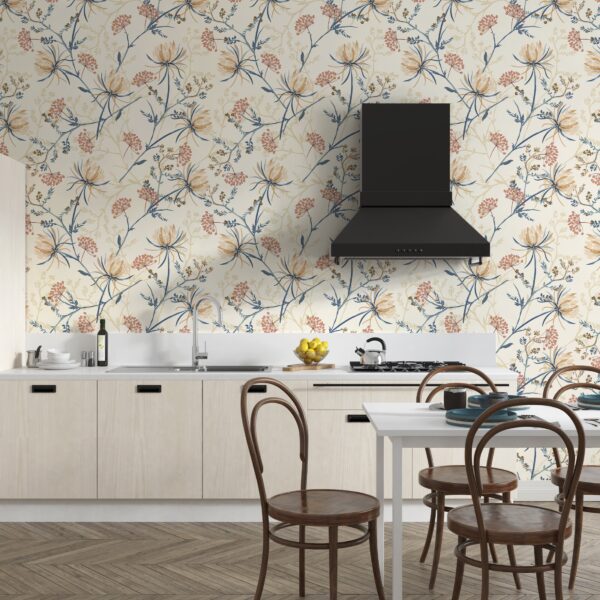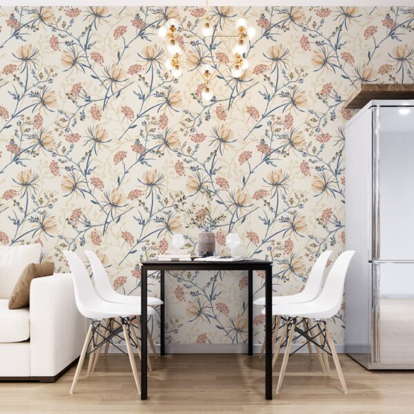 Vintage Kır Çiçeği Desenli Duvar Kağıdı – Krem