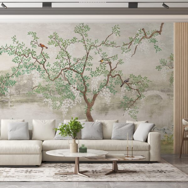 Vintage Chinoiserie Manzara Duvar Kağıdı