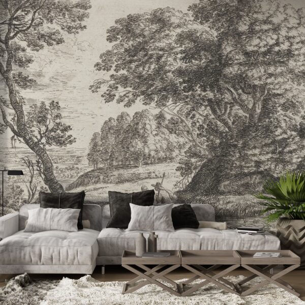 Vintage Gravür Stilinde Monokrom Manzara Duvar Kağıdı