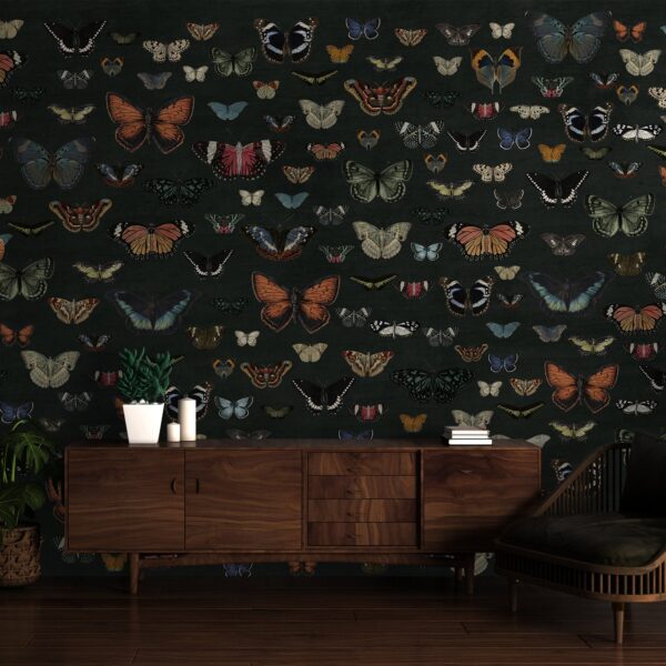 Vintage Kelebek Koleksiyonu Koyu Zemin Duvar Kağıdı