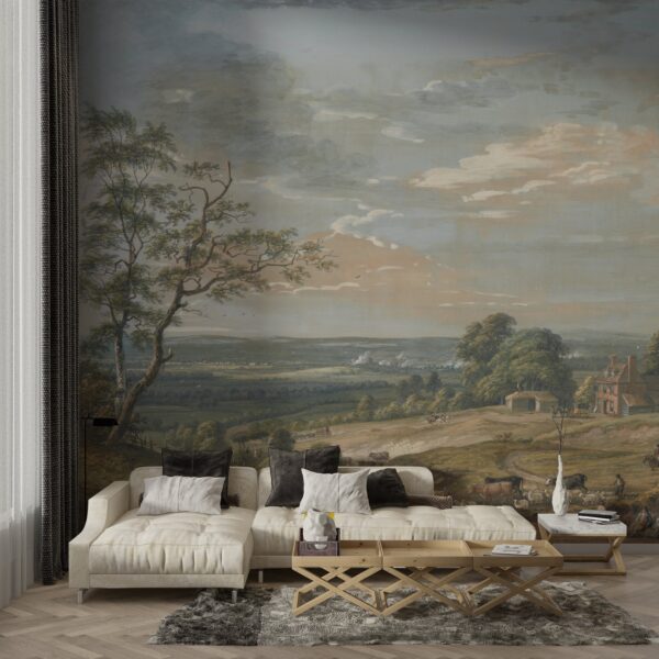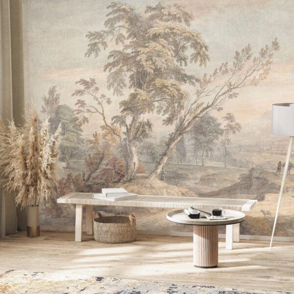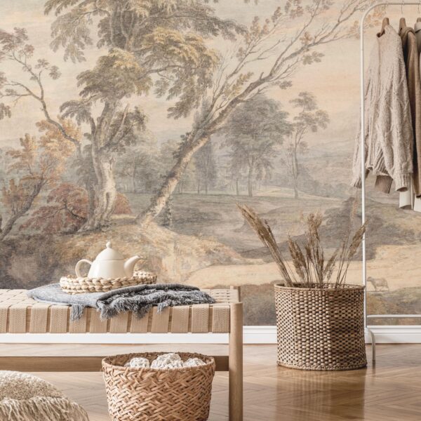 Vintage Kır Manzarası Sanatsal Duvar Kağıdı – Özel Ölçü