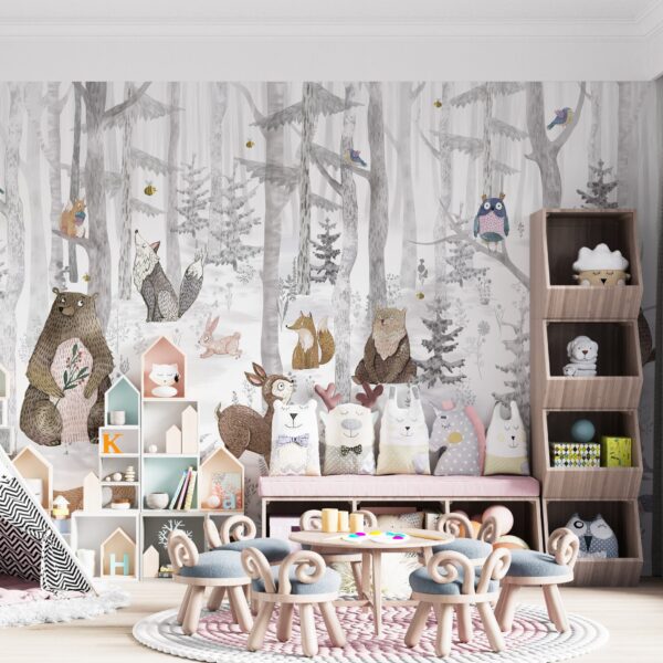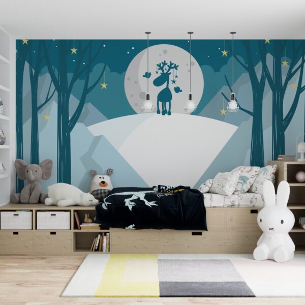 Kış Ormanı ve Ren Geyiği Temalı Çocuk Odası Duvar Kağıdı