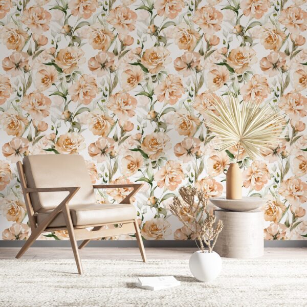 Kayısı Tonlu Suluboya Şakayık Desenli Duvar Kağıdı