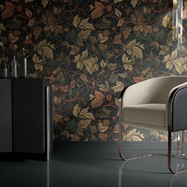 Karanlık Renkli Çiçek Desenli Duvar Kağıdı