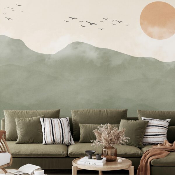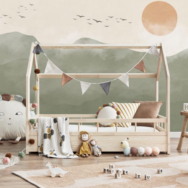 İskandinav Tarzı Dağ Manzaralı Çocuk Odası Duvar Kağıdı