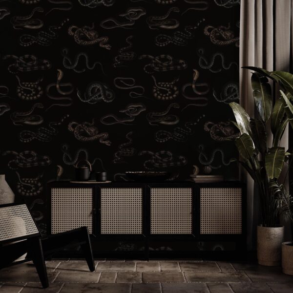 Karanlık Tonlarda Yılan Desenli Duvar Kağıdı