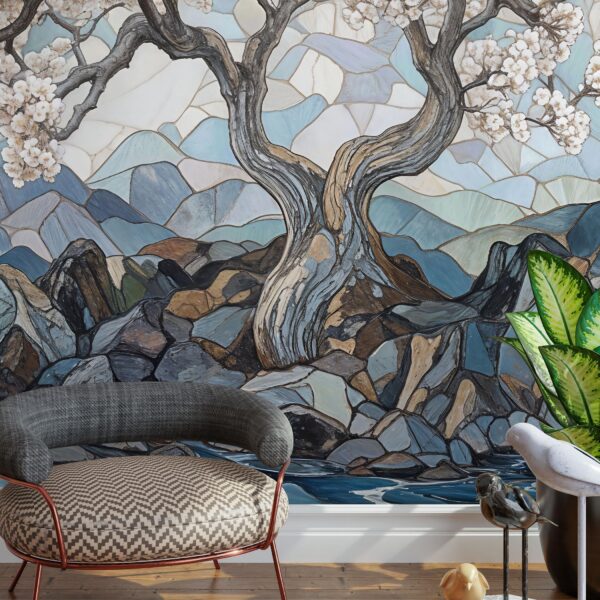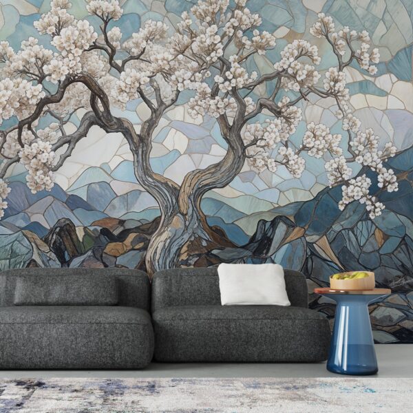 Japon Tarzı Mozaik Sakura Ağacı Duvar Kağıdı
