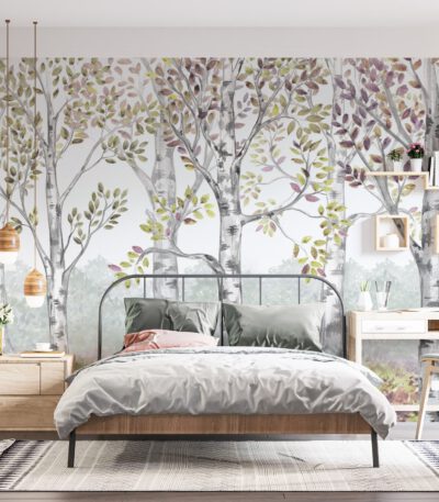 Kuş ve Çiçek Desenli Renkli Duvar Kağıdı