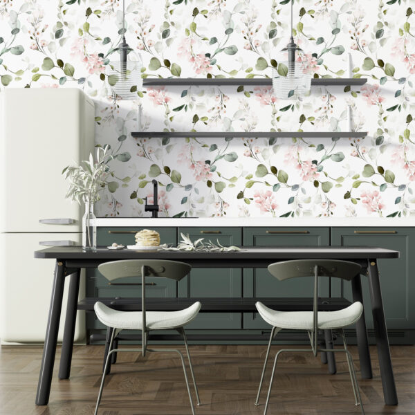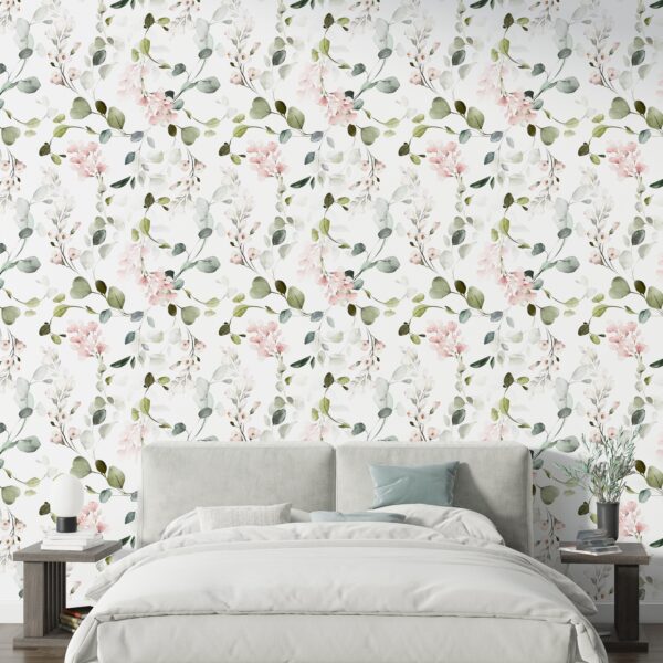 Pembe Çiçekli Okaliptüs Desenli Narin Duvar Kağıdı