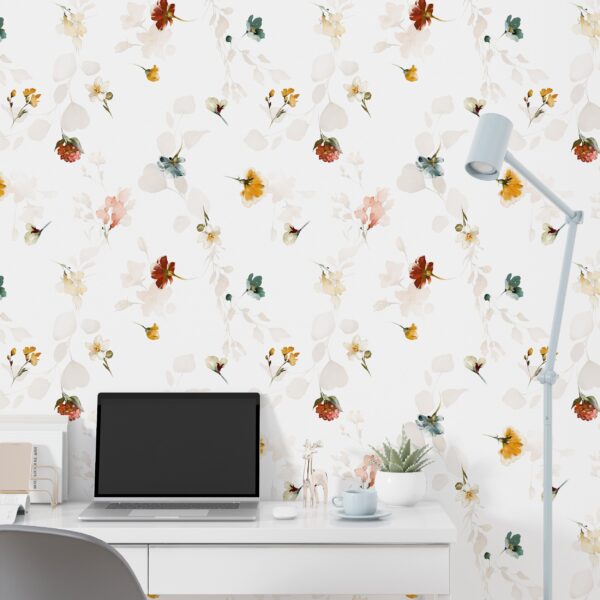 Krem Zemin El Çizimi Kır Çiçekleri Duvar Kağıdı