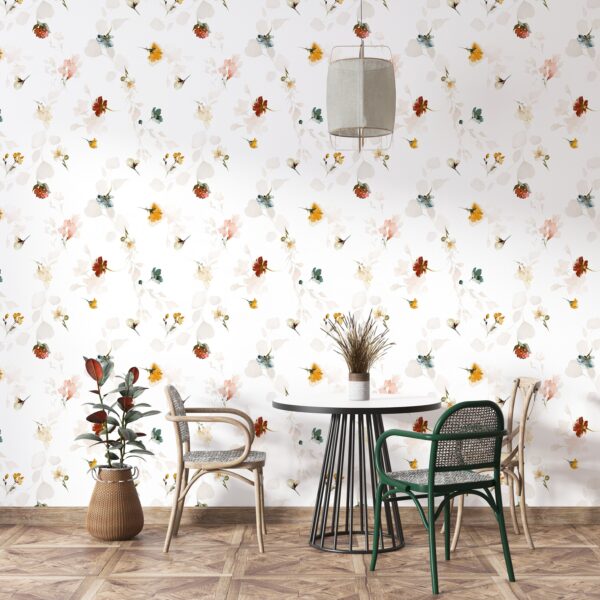 Pastel Suluboya Narin Çiçek Desenli Duvar Kağıdı