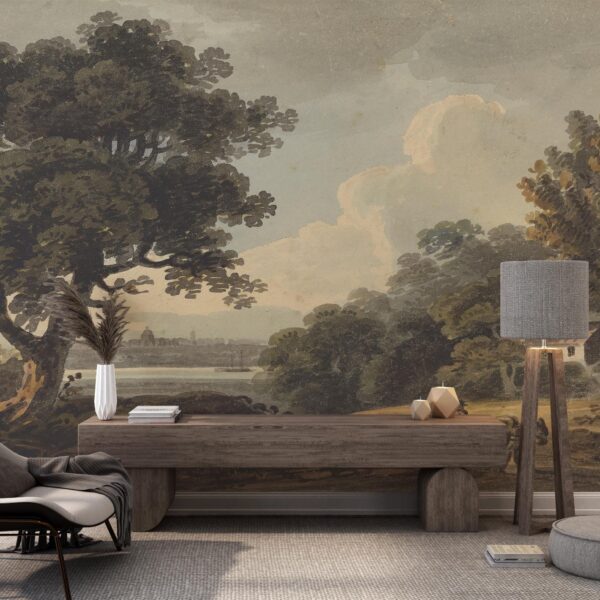 Nehir Manzaralı Klasik Tablo Duvar Kağıdı – Eski Peyzaj Sanatı