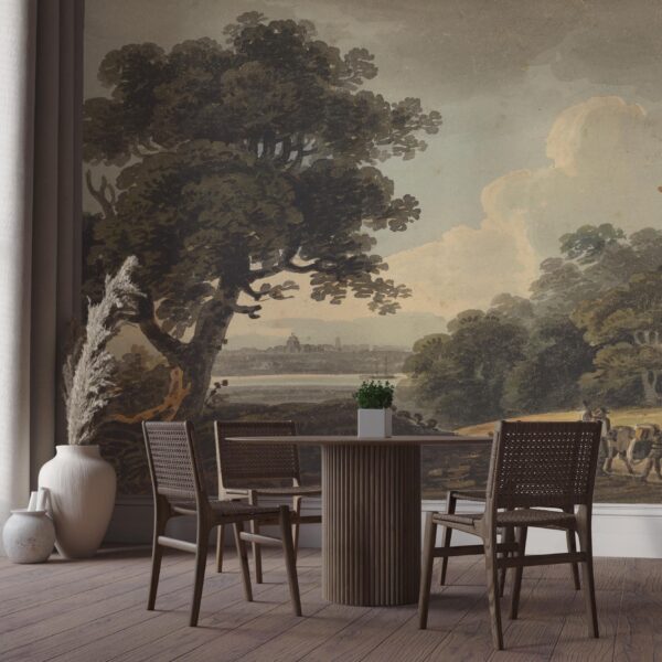 Pastoral Manzara Duvar Kağıdı – Vintage Doğa Tablosu