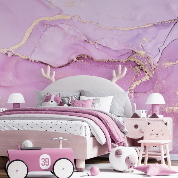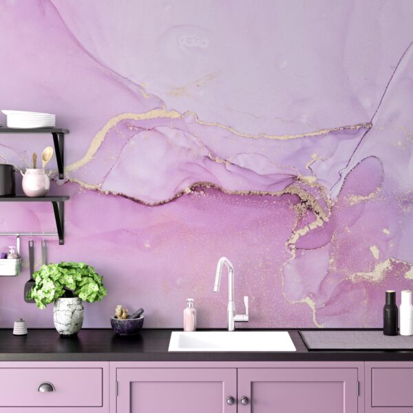 Mor Pembe Mermer Desenli Altın Damarlı Duvar Kağıdı
