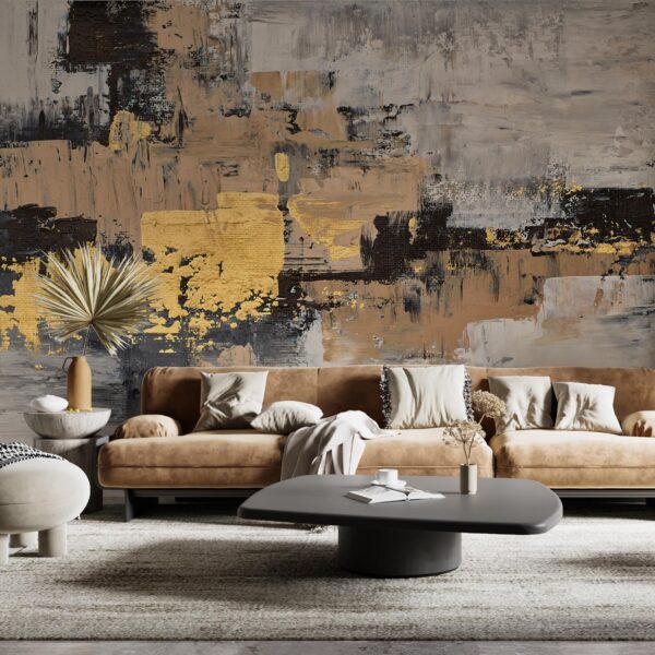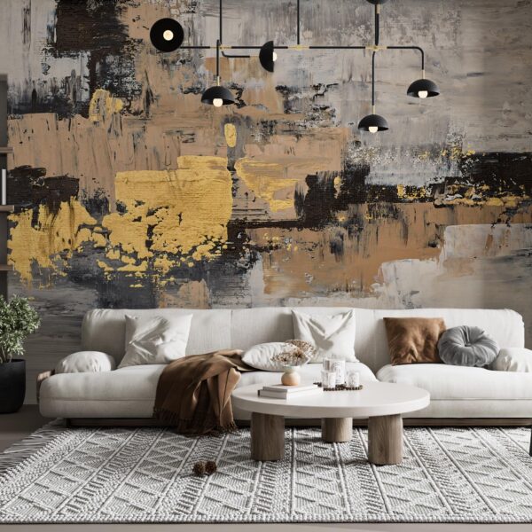 Modern Soyut Sanat Altın Dokunuşlu Endüstriyel Duvar Kağıdı