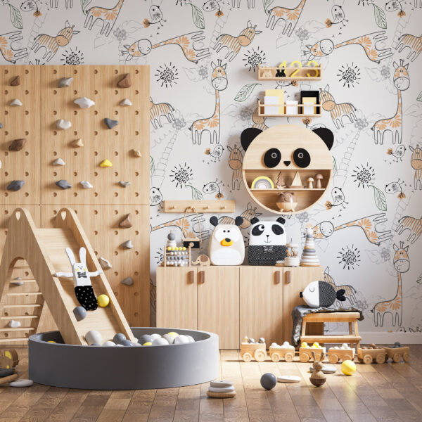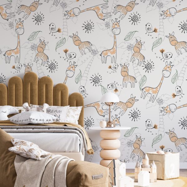 Sevimli Zürafalı Safari Çocuk Duvar Kağıdı