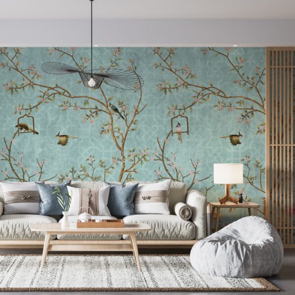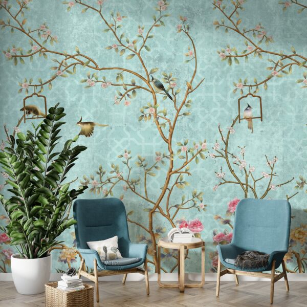Oryantal Kuş ve Çiçek Desenli Duvar Kağıdı